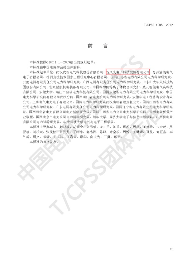 新风光公司在该标准的制定、验证、宣传、贯彻、推广等方面,做了大量的基础性工作,为推进该项团体标准的实施落地,做出了重要贡献。新风光公司在电能质量治理方面,取得了骄人的成绩,为光伏、风电、冶金、煤炭、化工、铁路、城市轨道交通等行业提供了完美无瑕的电能质量治理解决方案,获得了客户的广泛赞誉和业内同行的高度认可。