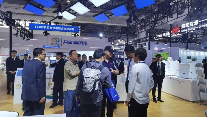 展会发布的新风光最新防爆高压变频器产品,采用变压器与变流器一体化设计,减小井下占地及系统成本,采用功率单元串联叠加技术,使变频器输出波形基本与正弦波形相近,无需输出滤波器,设备摆放位置限制少,行业内体积最小。